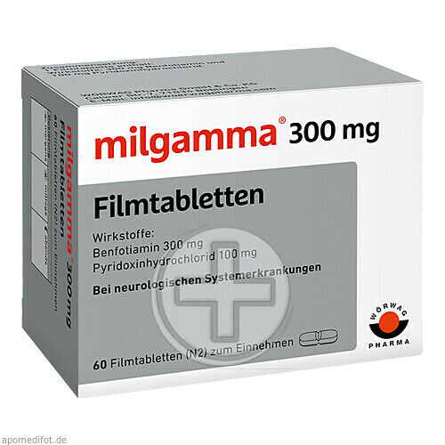 1 Filmtbl. enthält: Benfotiamin 300mg, Pyridoxin-HCl 100mg. weitere Bestandteile: Mikrokrist. Cellulose, Cellulosepulver, Maisstärke, Gelatine, Mg-sterarat, Hypromellose, Propylenglycol, Titandioxid (E 171), Eisen(III)-hydroxid-oxid x H2O (E 172), Talkum, Macrogol 6000.